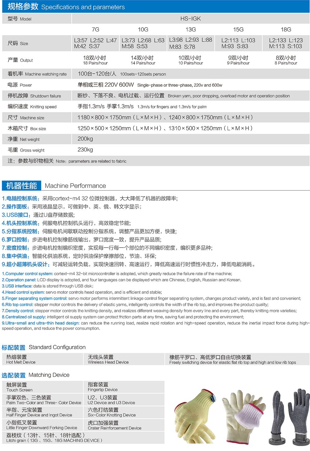 HS-IGK High speed intelligent glove knitting machine